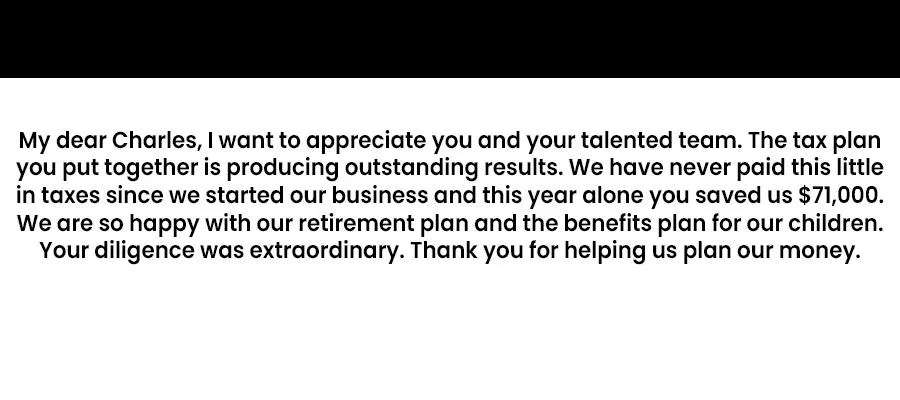 I help physicians, healthcare professionals, and businesses minimize their tax liability through proactive advisory and advanced tax planning strategies. This allows them to invest their savings, grow their business, and build long-term wealth.
